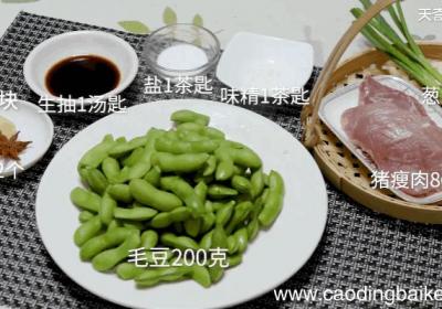 步骤1准备食材:毛豆200克、猪瘦肉80克、盐1茶匙、味精1茶匙、葱10克、姜1块、八角2个、生抽1汤匙 。步骤2猪瘦肉切块 。步骤3葱切段 。步骤4姜切片 。步骤5砂锅放火上,倒入适量水 。步骤6再放入葱、姜片、八角烧开 。步骤7再下入猪...