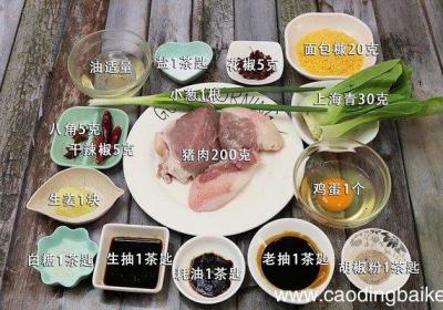 步骤1准备食材:猪肉200克、鸡蛋1个、油适量、盐1茶匙、上海青30克、花椒5克、八角5克、干辣椒5克、生姜1块、白糖1茶匙、生抽1茶匙、耗油1茶匙、老抽1茶匙、胡椒粉1茶匙、面包糠20克、小葱1根 。步骤2猪肉洗净剁成肉泥 。步骤3鸡蛋搅...