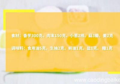 步骤1【肉末烧香芋的做法 肉末烧香芋怎么做】食材:香芋300克、肉末150克、小葱2根、蒜3瓣、姜2克 。调味料:食用油5克、生抽2克、蚝油1克、盐1克、糖1克 。步骤2香芋切块 。步骤3小葱切葱花 。步骤4姜切末 。步骤5热锅倒油,油温5...