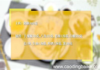 发布时间: 11小时前步骤1准备食材:猪脚300克、姜1块、葱30克、八角20克、干辣椒10克、白糖20克、生抽1汤匙、老抽1汤匙、料酒1汤匙 。步骤2姜切片 。步骤3葱打结 。步骤4将猪脚冷水入锅烧开 。步骤5撇去浮沫 。步骤6捞出备用 。步骤7加入少量清水...