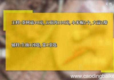 步骤1所需食材:茶树菇40克,五花肉100克,小米椒2个,大蒜2瓣 。所需调料:生抽1汤匙,盐1茶匙 。步骤2茶树菇剪断,清水浸泡 。步骤3五花肉切片 。步骤4红辣椒切圈 。【茶树菇炒五花肉的做法 茶树菇炒五花肉怎么做】步骤5大蒜切片 。步...