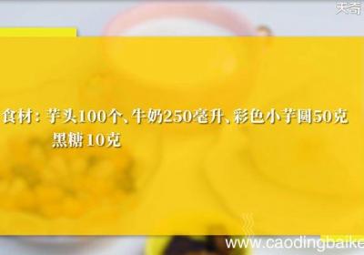 步骤1所需食材:芋头半个、牛奶250毫升、彩色小芋圆50克 。所需调料:黑糖10克 。【黑糖芋泥嘟嘟茶的做法 黑糖芋泥嘟嘟茶怎么做】步骤2芋头去皮切成小块 。步骤3放入蒸锅蒸熟 。步骤4取出放入碗中捣成泥 。步骤5芋泥加入黑糖拌匀 。步骤6...