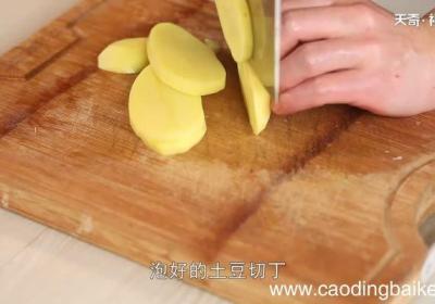 1、首先把鸡胸肉切成小块,泡好的土豆切丁 。【土豆鸡肉酪的做法 鸡肉怎么做好吃】2、鸡胸肉加入白酒、盐、生抽、胡椒粉、淀粉搅拌均匀,再放入土豆块和两大勺淀粉拌匀后腌制5分钟 。3、热锅加入冷油,升温后放入土豆、鸡肉做成饼的形状,翻炸两面防止...
