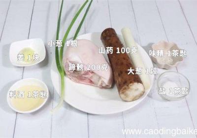 步骤1主料:蹄髈200克、山药100克 。辅料:大葱1段、料酒1茶匙、味精1茶匙、小葱1根、姜1块、盐1茶匙 。步骤2蹄髈洗净剁块备用 。步骤3山药去皮,切滚刀备用 。步骤4大葱切段 。步骤5【山药炖蹄髈怎么做 山药炖蹄髈做法是什么】姜切片...