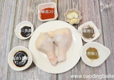 步骤1准备食材:鸡腿2只、辣椒面20克、蒜3瓣、黑胡椒粉1茶匙、孜然粉1茶匙、蚝油1茶匙、酱油1茶匙 。步骤2鸡腿洗净改花刀 。步骤3蒜切末 。步骤4首先碗中放入辣椒面、蒜末、孜然粉、黑胡椒粉、蚝油、酱油,少许水搅拌均匀调成酱料备用 。步骤...