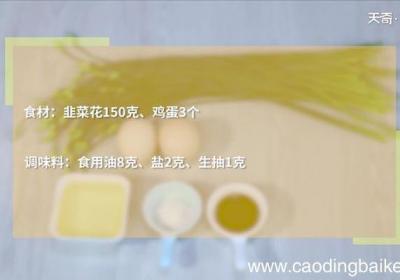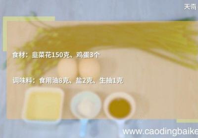 步骤1食材:韭菜花150克、鸡蛋3个 。调味料:食用油8克、盐2克、生抽1克 。【韭菜花的做法 韭菜花】步骤2韭菜花洗净、切细段 。步骤3鸡蛋打散、搅匀 。步骤4热锅倒油、油温6成热、倒入蛋液、炒散、捞出 。步骤5锅中留底油、下韭菜花、翻炒...