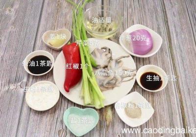 步骤1准备食材:八爪鱼150克、姜1块、红椒1个、芹菜5克、洋葱20克、蚝油1茶匙、生抽1茶匙、盐1茶匙、胡椒粉1茶匙、油适量、生粉1茶匙 。步骤2八爪鱼洗净切段 。步骤3姜切片 。【爆炒八爪鱼的做法 爆炒八爪鱼怎么做好吃】步骤4红椒切片...