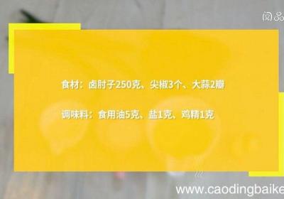 步骤1食材:卤肘子250克、尖椒3个、大蒜2瓣 。调味料:食用油5克、盐1克、鸡精1克 。步骤2卤肘子切片 。步骤3尖椒切斜片 。【辣椒炒肘子肉的做法 辣椒炒肘子肉怎么做】步骤4大蒜切末 。步骤5炒锅中油温5成热时,下入蒜末爆香,放入肘子翻...