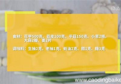 步骤1食材:花甲500克、苕皮100克、平菇150克、小葱2根、大蒜2瓣、姜2片调味料:生抽2克、老抽1克、蚝油2克、醋1克、糖3克步骤2苕皮放入温水中浸泡10分钟左右,泡软后捞出 。步骤3平菇洗净、撕小朵 。步骤4小葱切葱花 。步骤5大蒜...