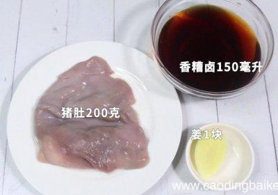 步骤1准备食材:猪肚200克、姜1块、香糟卤150毫升 。步骤2猪肚白色油脂洗净 。步骤3姜切片备用 。步骤4锅中烧开水,下猪肚焯水再次清洗 。步骤5再将猪肚放入锅中,放入姜片,加水煮40分钟 。步骤6然后取出煮好猪肚,将香糟卤倒入猪肚容器...