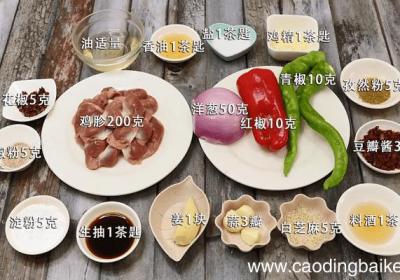 步骤1准备食材:鸡胗200克、洋葱50克、油适量、香油1茶匙、盐1茶匙、鸡精1茶匙、青椒10克、红椒10克、花椒5克、胡椒粉5克、孜然粉5克、豆瓣酱30克、姜1块、蒜3瓣、生抽1茶匙、料酒1茶匙、淀粉5克、白芝麻5克 。步骤2鸡胗洗净切片...