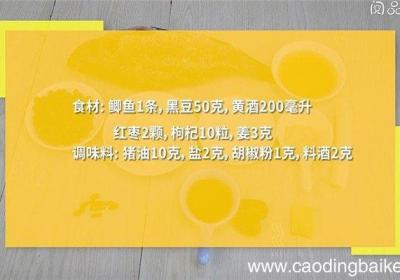 步骤1准备食材:鲫鱼1条,黑豆50克,黄酒200毫升,红枣2颗 。枸杞10粒,姜3克、猪油10克,盐2克,胡椒粉1克,料酒2克 。【黑豆生鱼汤怎么做 黑豆生鱼汤的做法】步骤2鲫鱼洗净,加入料酒,拌匀,腌制20分钟 。步骤3姜切片 。步骤4黑...