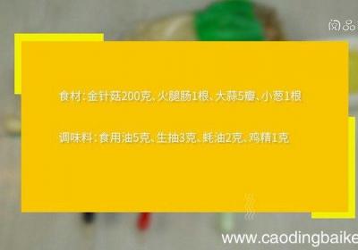 步骤1食材:金针菇200克、火腿肠1根、大蒜5瓣、小葱1根、食用油5克、生抽3克、蚝油2克、鸡精1克 。【金针菇火腿肠怎么做好吃 金针菇火腿肠的做法】步骤2金针菇去蒂,撕成小朵 。步骤3火腿肠切小条 。步骤4大蒜切末 。步骤5小葱切葱花 。...
