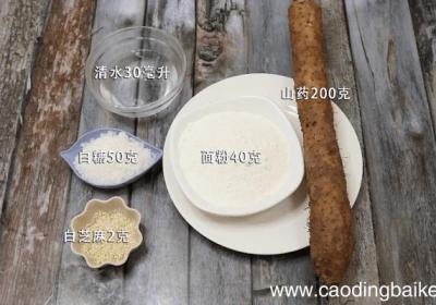 步骤1准备食材:山药200克、白糖50克,面粉40克、清水30毫升、白芝麻2克 。步骤2山药去皮洗净切滚刀块 。步骤3首先碗中倒入面粉、适量清水搅拌成面浆 。步骤4然后倒入山药,搅拌至每一块山药都均匀挂浆 。步骤5接着起锅倒油,油温8成热,...