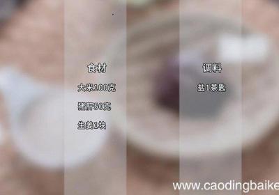 步骤1所需食材:大米100克、猪肝50克、生姜1块 。调料:盐1茶匙 。步骤2将洗净的猪肝切成条 。步骤3姜切成片 。步骤4大米提前洗净,锅内倒水烧开,然后倒入大米,加盖煮沸,水开后改用小火熬煮约30分钟 。步骤5加入姜片、猪肝,调入1勺盐...