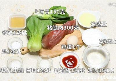 步骤1准备食材:猪腿肉300克,上海青2颗,蛋清1个,番茄酱2汤匙,白糖1茶匙,盐1茶匙,味精1茶匙,绍酒1汤匙,淀粉1汤匙,清汤150克,明油适量步骤2把猪腿肉切成圆片 。步骤3上海青掰成片备用 。步骤4猪腿肉加入精盐拌匀,再用蛋清、淀粉...