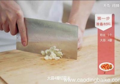 1. 娃娃菜洗净,对半切开后切小块,粉丝用温水泡软,大蒜6瓣切蒜末,小米椒3个切圈,小葱2根切葱花 。2. 娃娃菜放入盘中,放上泡好的粉丝,将蒜末、小米椒圈放入碗中 。【蒜蓉粉丝娃娃菜的做法】3. 锅中放入适量油,油温烧至7成热,将热油倒入...