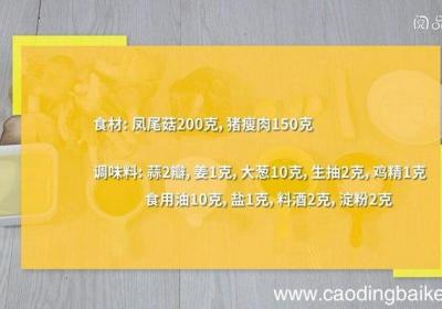 步骤1食材:凤尾菇200克,猪瘦肉150克,蒜2瓣,姜1克,大葱10克调味料:食用油10克,盐1克,料酒2克,淀粉2克,生抽2克,鸡精1克【凤尾菇炒肉片的做法 凤尾菇炒肉片怎么做】步骤2凤尾菇撕小朵 。步骤3蒜切片 。步骤4姜切丝 。步骤5...