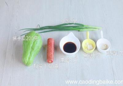 步骤1【凉拌佛手瓜的做法 怎么做凉拌佛手瓜】食材:佛手瓜200克、胡萝卜50克、小葱2根、生抽5克、白糖1勺、鸡精1勺 。步骤2佛手瓜洗净切丝 。步骤3胡萝卜洗净切丝 。步骤4葱切葱花 。步骤5锅中放入适量清水烧开,放入佛手瓜丝和胡萝卜丝焯...