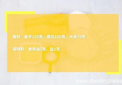 步骤1食材:香芋150克、南瓜100克、大米70克调味料:食用油3克、盐1克步骤2香芋切小块 。【香芋南瓜焖饭的做法 香芋南瓜焖饭怎么做】 步骤3南瓜去皮、切小块 。步骤4大米洗净 。步骤5热锅倒油,油温5成热时,下香芋、南瓜,炒匀,放入生...