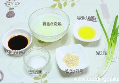 步骤1准备食材:酱油1汤匙、香油1茶匙、高汤3汤匙、葱2根、芝麻1汤匙、盐1茶匙 。步骤2葱切葱花 。步骤3将芝麻用小火焙香,表面微黄即可 。【捞拌汁的做法捞拌汁怎么做】步骤4将芝麻倒入碗中,再放入葱花、酱油、高汤、香油、盐,用筷子搅拌均匀...