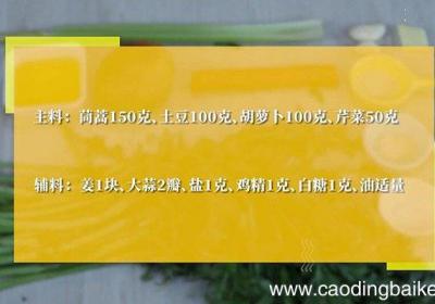 步骤1主料:茼蒿150克、土豆100克、胡萝卜100克、芹菜50克 。辅料:姜1块、大蒜2瓣、盐1克、鸡精1克、白糖1克、油适量 。步骤2茼蒿洗净切小段 。步骤3土豆切丁 。步骤4胡萝卜切丁 。步骤5芹菜洗净切丁 。步骤6姜切末 。步骤7蒜...