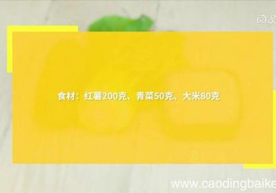 步骤1食材:红薯200克、青菜50克、大米80克 。步骤2红薯去皮,切小块 。步骤3青菜切碎 。步骤4大米洗净 。步骤5锅中倒入适量清水,放入大米、红薯煮30分钟,放入青菜 。步骤6【红薯青菜粥 红薯青菜粥的做法】继续煮1分钟即可 。...