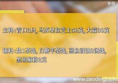 步骤1所需食材:青口3只,马苏里拉芝士50克,大蒜30克 。所需调料:盐1茶匙,白糖半茶匙,蒸鱼豉油2汤匙,黑胡椒粉2克 。步骤2青口取出肉,用清水洗净 。步骤3取一小杯,放入黑椒粉、蒜末 。步骤4再将蒸鱼豉油、盐、糖搅拌均匀 。步骤5将蒜...