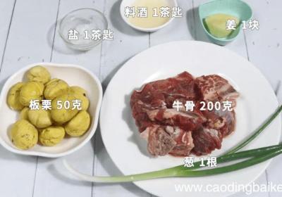 步骤1准备食材:牛骨200克、板栗50克 料酒1茶匙、姜1块、盐1茶匙、葱1根 。【板栗牛骨汤 板栗牛骨汤怎么做好吃】步骤2姜切片 。步骤3葱切葱花 。步骤4板栗改小块备用 。步骤5牛骨洗净备用 。步骤6起锅倒水,将牛骨倒入锅内,加入料酒烧...