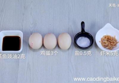 步骤1准备食材:虾米5克、鸡蛋3个、盐0.5克、蒸鱼豉油2克 。步骤2虾米放入清水中浸泡5分钟 。步骤3鸡蛋打入碗中,加入盐0.5克搅拌均匀,倒入适量清水拌匀,用保鲜膜包裹,并用牙签扎一些小孔 。步骤4锅中放入鸡蛋羹蒸8分钟,去除保鲜膜,放...