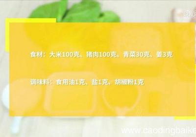 发布时间: 8小时前步骤1食材:大米100克、猪肉100克、青菜30克、姜3克 。调味料:食用油1克、盐1克、胡椒粉1克 。步骤2青菜切碎 。步骤3姜切片 。步骤4猪肉剁碎 。步骤5加1克油、少许盐,拌匀腌制10分钟 。步骤6锅中倒入适量清水,放入大米、姜片大...