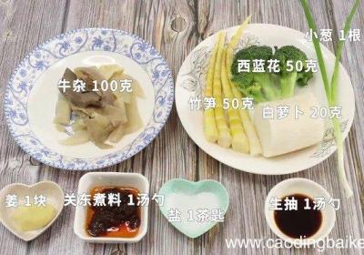 步骤1准备食材:牛杂100克、西蓝花50克、竹笋50克、关东煮料1汤勺、白萝卜20克、姜1块、小葱1根、生抽1汤勺、盐1茶匙 。步骤2牛杂洗净改刀成小块 。【牛杂关东煮的做法 牛杂关东煮怎么做好吃】步骤3白萝卜洗净切片 。步骤4竹笋切段 。...