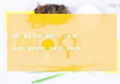 步骤1食材:雪菜100克、香芋1个、小葱2根 。调味料:食用油5克、生抽1克、鸡精1克 。步骤2雪菜切段 。【香芋怎么做 香芋的做法】步骤3香芋切滚刀块 。小葱切葱花 。步骤4热锅倒油、油温5成热,下葱花、雪菜,煸炒,倒入生抽、300毫升清...