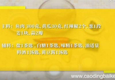 发布时间: 7小时前步骤1准备食材:鱼肉300克、黄瓜30克、红辣椒2个、葱1段、姜1块、蒜2瓣、盐1茶匙、白糖1茶匙、味精1茶匙、料酒1汤匙、黄豆酱汤匙步骤2葱切段,姜切丝,蒜切片,鱼肉切丁,黄瓜切丁,红椒切圈步骤3鱼肉丁中加入料酒,盐,糖,味精,腌制10分...
