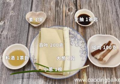 步骤1准备食材:咸肉100克、香肠100克、百叶100克、小葱1根、盐1茶匙、姜1块、蒜3瓣、生抽1茶匙、蚝油1茶匙 。步骤2咸肉洗净切片 。步骤3百叶切丝 。步骤4大葱切片 。步骤5姜切片 。步骤6小葱切葱花 。步骤7首先将百叶摆入盘中,...