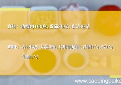 步骤1食材:猪瘦肉100克、番茄80克、毛豆80克 。辅料:姜1小块、大蒜3瓣、食用油适量、料酒1勺、盐1勺、生抽1勺 。步骤2先将番茄洗净,然后切丁 。步骤3毛豆提前剥壳,再放入清水中清洗干净 。步骤4猪瘦肉切碎,剁成肉末 。步骤5姜切末...