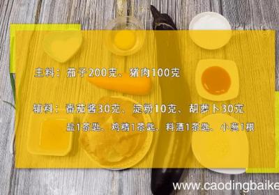 步骤1准备食材:茄子200克、猪肉100克、番茄酱30克、淀粉10克、胡萝卜30克、盐1茶匙、鸡精1茶匙、料酒1茶匙、小葱1根 。步骤2茄子对半切开改上花刀分成大块 。步骤3小葱切葱花 。步骤4猪肉剁成肉泥 。步骤5胡萝卜一半切片一半丝 。...