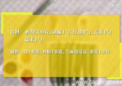 步骤1食材:秋葵300克,剁椒1勺,红油1勺,姜末1勺,蒜末1勺辅料:盐1勺,鸡精一勺,芝麻油适量,葱花少许步骤2先将秋葵放入开水里煮熟,步骤3在碗中放入剁椒、红油、蒜末、姜末以及葱花拌匀,再加入盐、鸡精、白糖、芝麻油等佐料步骤4将秋葵14...