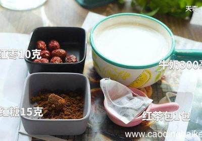 步骤1准备食材: 红枣10克、红茶包1包、牛奶300毫升、红糖15克 。步骤2先将红枣去核剪碎 。步骤3锅中倒入适量清水,倒入红枣,加入红糖,用小火煮5分钟 。步骤4煮至浓稠后放入茶包,再倒入牛奶,用小火继续煮开 。步骤5最后将煮好的奶茶倒...