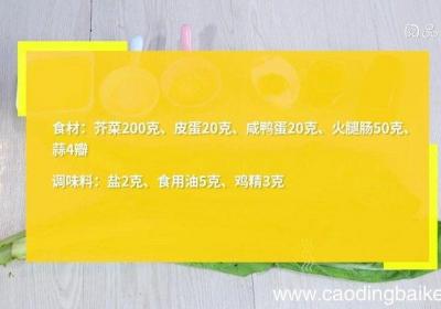 步骤1食材:芥菜200克、皮蛋20克、咸鸭蛋20克、火腿肠50克、蒜4瓣调味料:盐2克、食用油5克、鸡精3克【上汤芥菜的做法 上汤芥菜怎么做】 步骤2蒜切蒜末,去壳的咸蛋黄切?。?去壳的皮蛋切丁,火腿肠切丁,芥菜洗净,切丝 。步骤3锅中烧水...