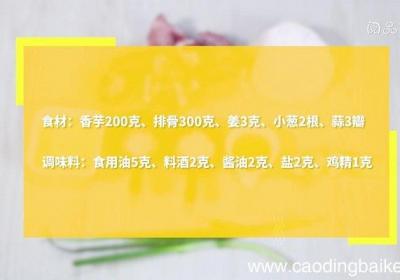 步骤1食材:香芋200克、排骨300克、姜3克、小葱2根、蒜3瓣调味料:食用油5克、料酒2克、酱油2克、盐2克、鸡精1克【香芋炖排骨的做法 香芋炖排骨怎么做】步骤2芋头切块 。小葱切切断,姜切片,蒜对半切开 。步骤3热锅倒油,油温5成热时,...
