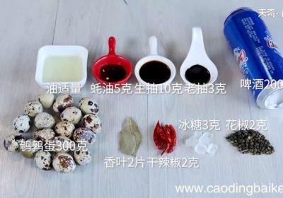 步骤1准备食材:鹌鹑蛋300克、啤酒200克、花椒2克、干辣椒2克、香叶2片、生抽10克、老抽3克、蚝油5克、冰糖3克 。步骤2锅中放入适量清水,放入鹌鹑蛋大火烧开,煮8分钟,捞出放入凉水中 。步骤3将放凉的鹌鹑蛋剥壳备用 。步骤4干辣椒剪...