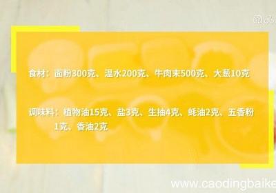 步骤1食材:面粉300克、温水200克、牛肉末500克、大葱10克、植物油15克、盐3克、生抽4克、蚝油2克、五香粉1克、香油2克 。步骤2面粉中加入温水、2克盐、10克植物油,拌匀成面絮,揉成光滑面团,放置醒发40分钟 。步骤3取出,揪出...