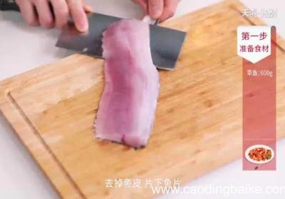 步骤:【滑炒草鱼的做法】1. 草鱼洗净沿鱼骨切开,去掉鱼皮,片下鱼片,木耳撕小块,青椒切小块,红椒切小块,姜切片,小葱切段;2. 鱼片中放入盐半勺、鸡精半勺、胡椒粉1克、料酒1勺拌匀腌制5分钟,放入鸡蛋清、淀粉拌匀;3. 木耳、鱼片分别放入...