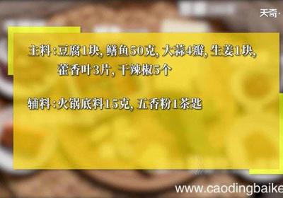 步骤1所需食材:豆腐1块,鳝鱼50克,大蒜4瓣,生姜1块,藿香叶3片,干辣椒5个 。所需调料:火锅底料15克,五香粉1茶匙 。步骤2【豆腐鳝鱼的做法 豆腐鳝鱼怎么做】豆腐切块 。步骤3干辣椒切段 。步骤4姜切末 。步骤5蒜切末 。步骤6热锅...