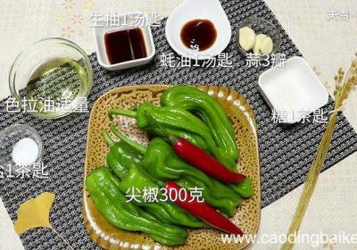 发布时间: 10小时前步骤1准备食材:尖椒300克、蒜3瓣、蚝油1汤匙、生抽1汤匙、糖1茶匙、盐1茶匙、色拉油适量 。步骤2蒜切末 。步骤3尖椒去蒂切两段 。步骤4锅中倒油,油热倒入尖椒,中火慢煎 。步骤5煎至两面微黄,再加入生抽、蚝油、盐、少许水焖3分钟 。【...