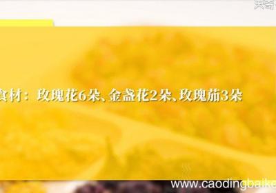 步骤1所需食材:玫瑰花6朵,金盏花2朵,玫瑰茄3朵 。步骤2将材料放入过滤杯中 。【金盏玫瑰茄茶怎么做 金盏玫瑰茄茶的制作方法】步骤3倒入开水冲洗 。步骤4洗好的材料放入茶杯中 。步骤5倒入开水 。步骤6浸泡5分钟即可 。...