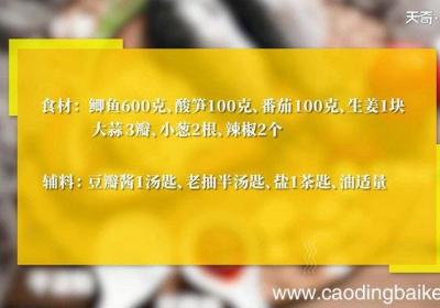步骤1食材:鲫鱼1条、酸笋100克、番茄100克、生姜1块、大蒜3瓣、小葱2根、辣椒2个 。辅料:豆瓣酱1汤匙、老抽半汤匙、盐1茶匙、油适量 。步骤2鱼身两面各划几刀 。步骤3番茄切小块 。步骤4姜切片 。步骤5蒜拍碎 。步骤6红辣椒切小段...