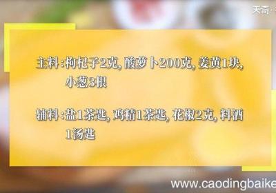 步骤1准备食材:枸杞子2克,酸萝卜200克,姜黄1块,小葱3根,花椒2克 ,盐1茶匙,鸡精1茶匙,料酒1汤匙 。步骤2鸭肉洗净 。步骤3酸萝卜切块,姜切片,葱挽成葱结 。步骤4锅中放入鸭肉、姜片、料酒、清水适量 。步骤5大火煮开,焯水2分钟...