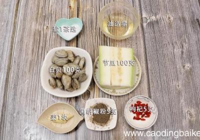 步骤1准备食材:节瓜100克、白贝100克、姜1块、黑胡椒粉5克、盐1茶匙、枸杞5克 、油适量 。步骤2节瓜去皮切条备用 。步骤3白贝浸泡30分钟吐沙 。步骤4姜切片 。步骤5枸杞浸泡10分钟 。步骤6首先锅中倒水烧热,倒入白贝,煮至开口,...